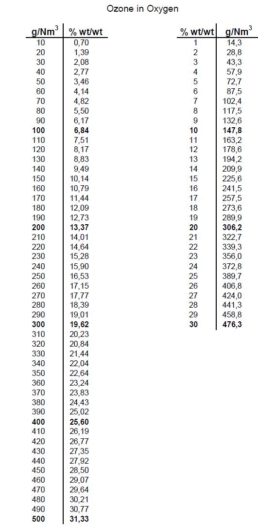 1、質(zhì)量濃度表示法:每立方米空氣中所含臭氧的質(zhì)量數(shù),即g/m3,還有mg/L、wt%