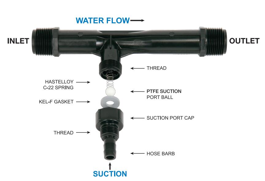 Mazzei射流器是非常高效,緊湊的差壓射流器與內(nèi)部混合葉片。當(dāng)專利射流器的進(jìn)出口端口之間存在足夠的壓力差時(shí),在射流器體內(nèi)產(chǎn)生真空,通過吸入口開始吸入。