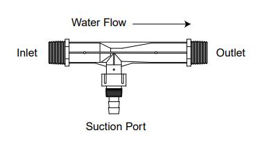 (圖3)Mazzei 1.5“或更小射流器的標(biāo)準(zhǔn)配置包括一個集成在吸入口中的止回閥。在將射流器投入使用之前,檢查并測試止回閥是否正常工作。如果沒有完整的止回閥,應(yīng)考慮采用其他方法防止水通過吸入管線回流。