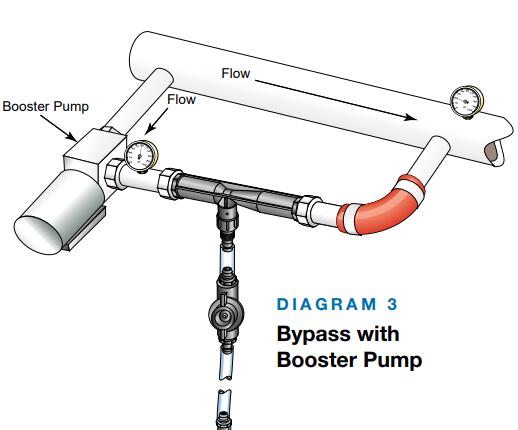 (圖1+2)當(dāng)主線壓力無法降低時,可以使用小型增壓泵產(chǎn)生足夠的壓差來操作噴油器。